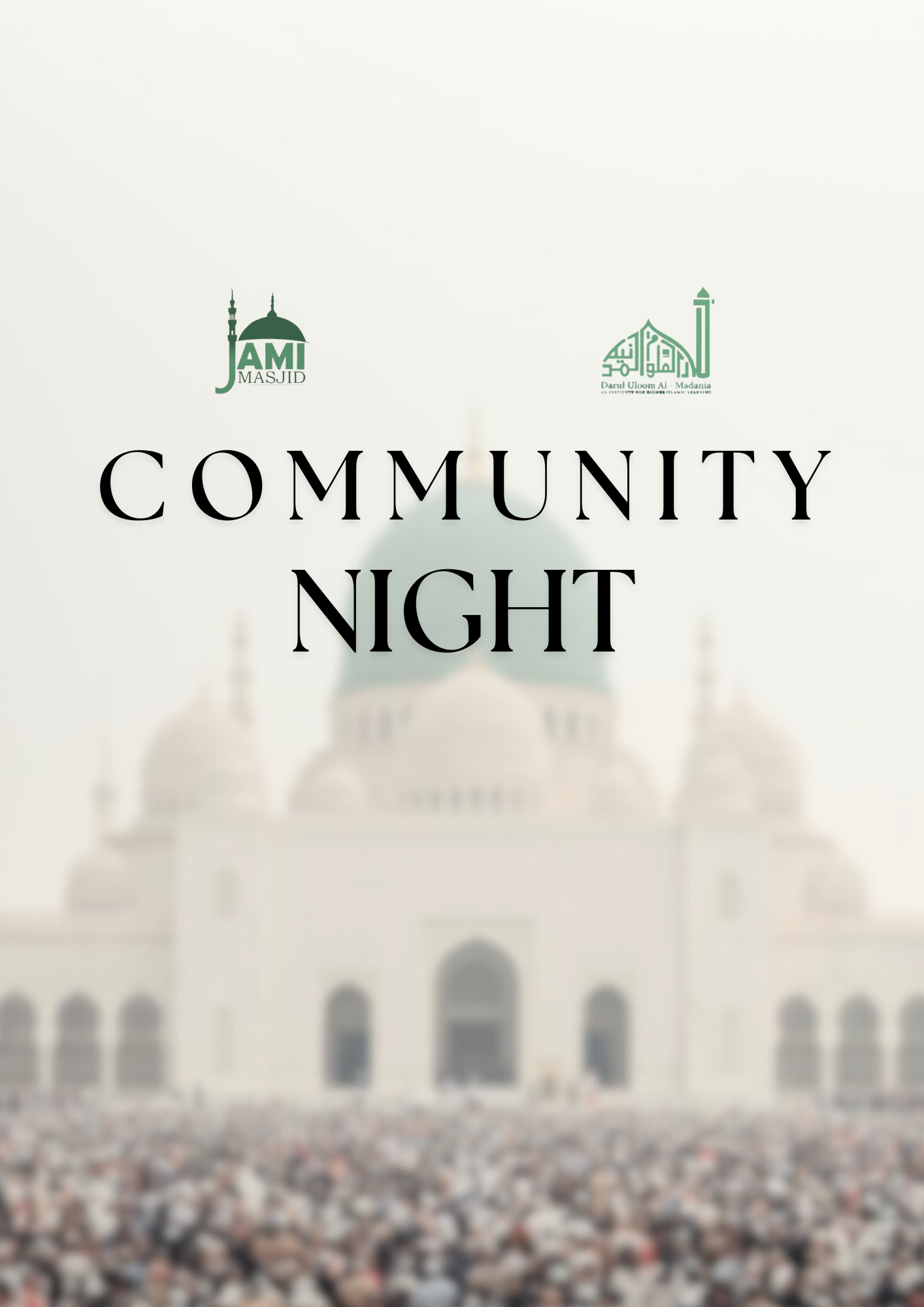 This special Community Night is being held at Jami Masjid on Saturday, November 8th, 2025, starting at 7:00 PM and concluding after the Isha prayer. The purpose of the program, centered around the theme "Many Hearts, One Jama'a: Taking Care of Our Community," is to foster unity, spiritual upliftment, and a collective focus on the well-being of the local community. The event will feature a talk and guidance from the respected scholar, Shaykh Ibrahim Memon Madani, providing attendees with an opportunity to benefit from his knowledge and strengthen their bonds of faith and community service.
